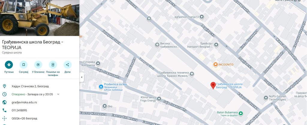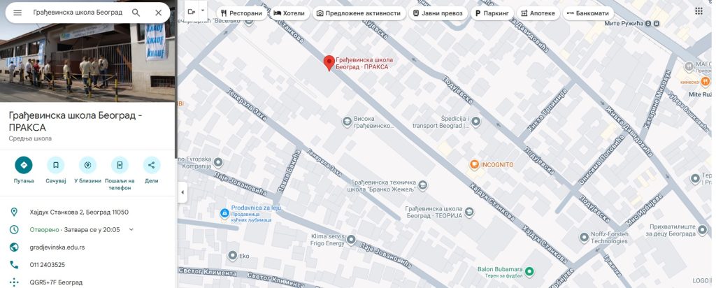 Грађевинска школа Београд – ПРАКСА – линк ка Гугл мапи